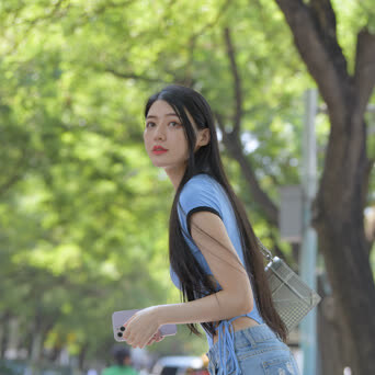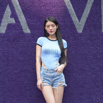 女孩身穿牛仔短裤秀出白皙长腿,上身的性感T恤衬托着小蛮腰,简直太迷人